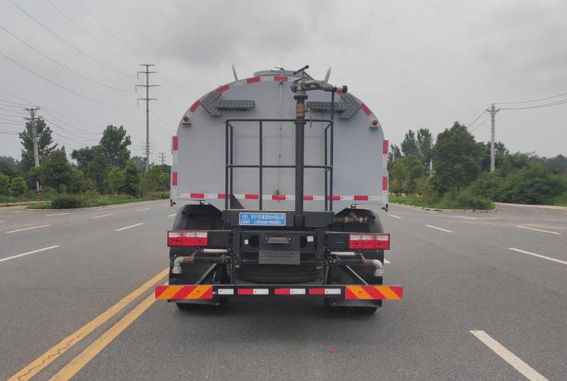 四、其他說明: 東風多利卡純電動灑水車是在東風EQ1181DACEV1二類底盤的基礎上,加裝低壓沖洗、灑水系統,由機械、液壓(氣路)、電器三部分合為一體的專用灑水作業車。采用自吸式雙級離心泵,效率高、灑水寬度大、水槍射程遠,低壓水泵由底盤變速器取力器通過傳動軸直接傳動。