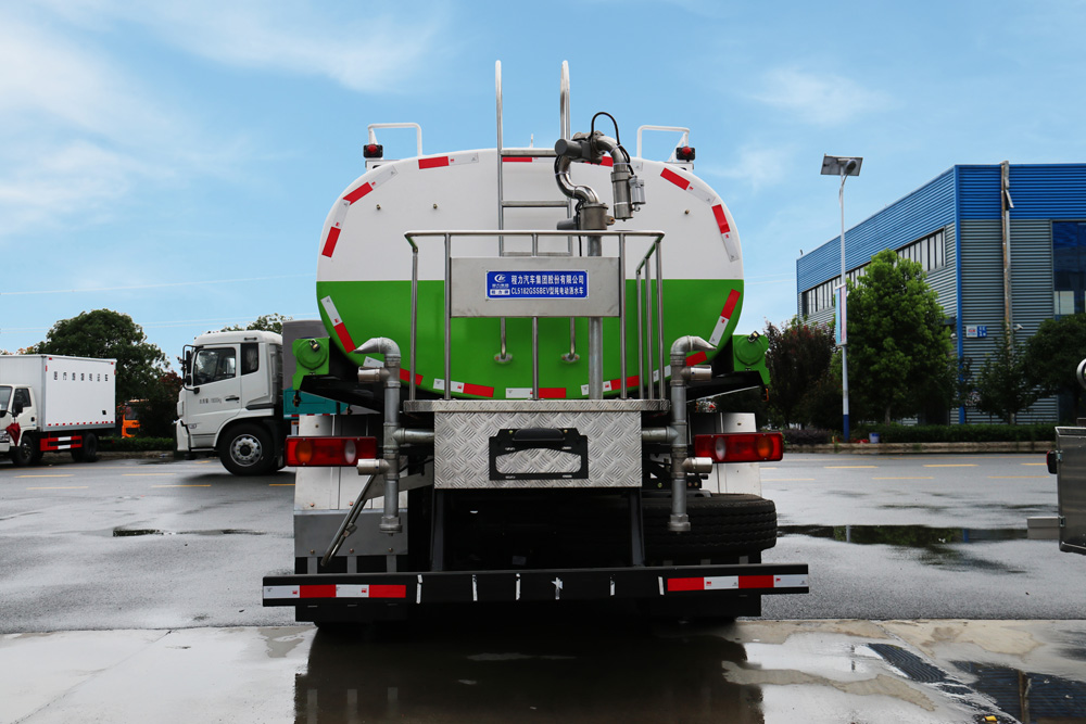 四、其他說明: 東風天錦純電動灑水車是在純電動二類底盤的基礎上,加裝低壓沖洗、灑水系統,由機械、液壓(氣路)、電器三部分合為一體的專用灑水作業車。采用自吸式雙級離心泵,效率高、灑水寬度大、水槍射程遠,低壓水泵由底盤變速器取力器通過傳動軸直接傳動。