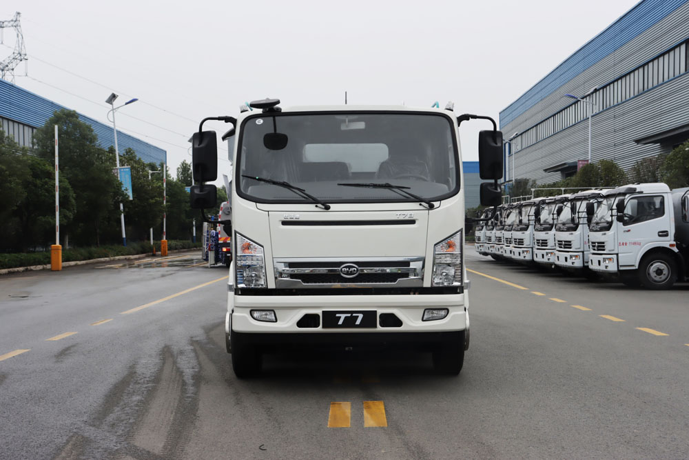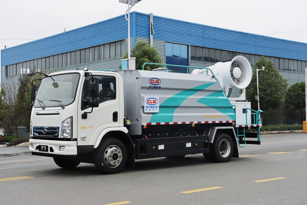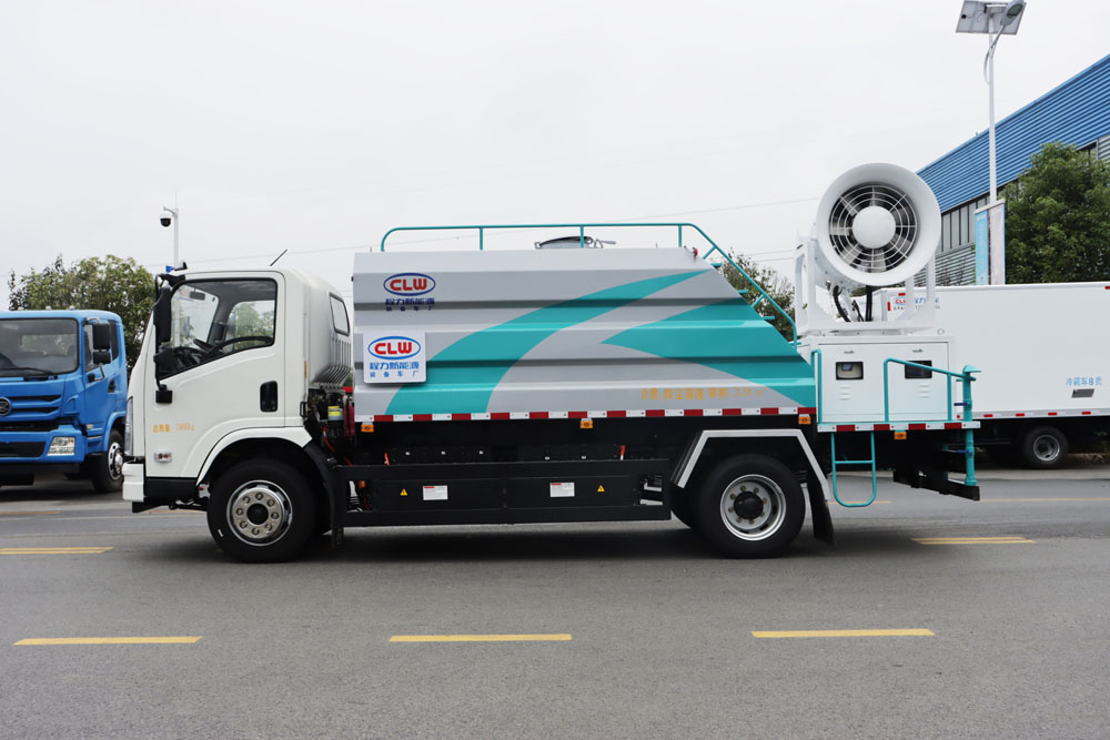 四、其他說明: 比亞迪T7B純電動多功能抑塵車是在純電動二類底盤的基礎上,加裝低壓沖洗、灑水系統、霧炮機組,由機械、液壓(氣路)、電器三部分合為一體的專用灑水作業車。 采用自吸式雙級離心泵,效率高、灑水寬度大、水槍射程遠,低壓水泵由底盤變速器取力器通過傳動軸直接傳動。霧炮機組由底盤電池帶動霧炮風扇電機、不銹鋼多級離心泵,進行噴霧降塵工作。