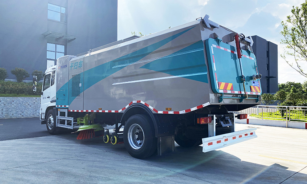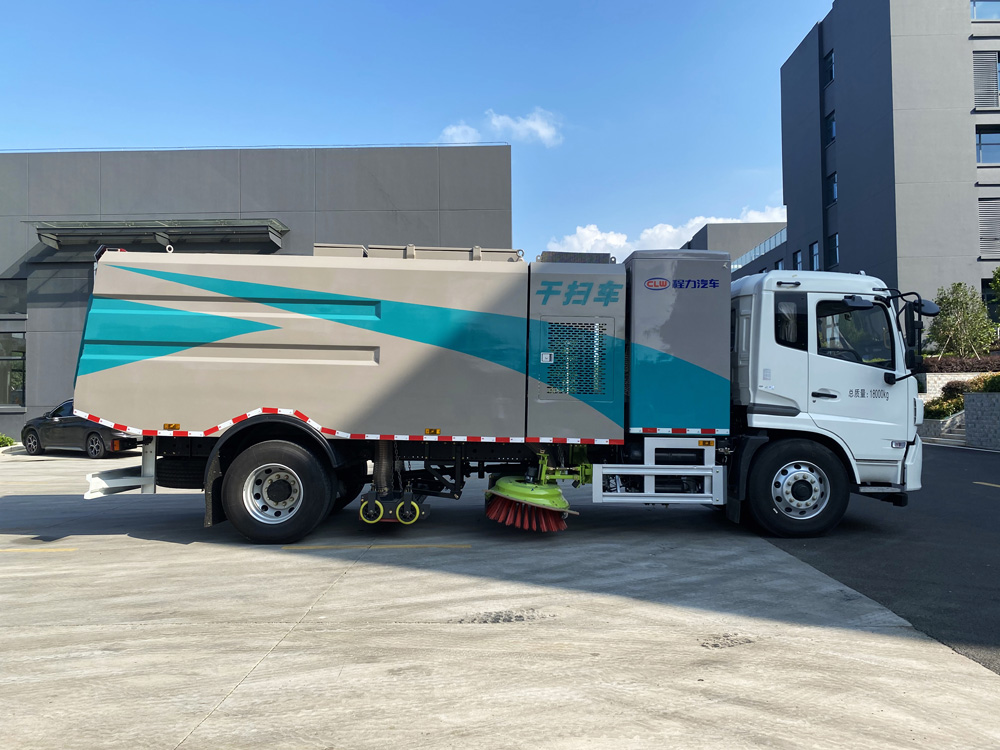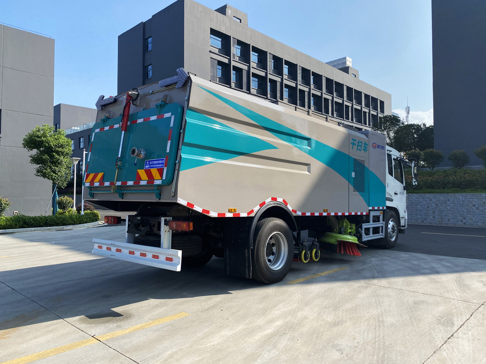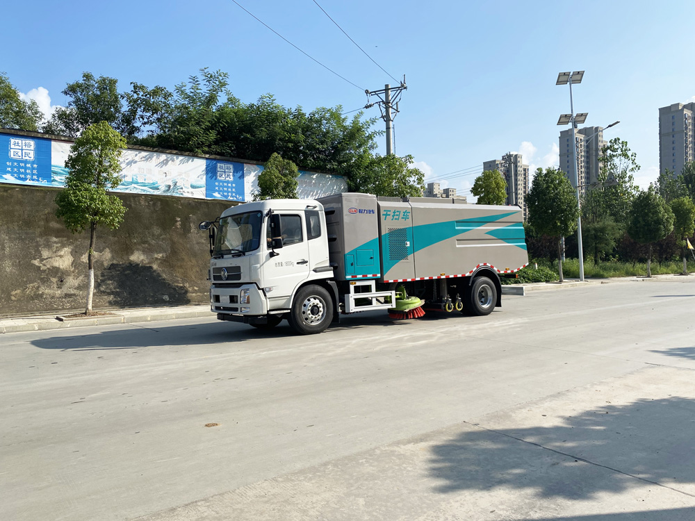 底盤發(fā)動機(jī)驅(qū)動洗掃車向前行走,掃至吸嘴前方的垃圾不斷進(jìn)入到吸嘴中,并源源不斷地被吸到垃圾箱中,實(shí)現(xiàn)路面清掃。