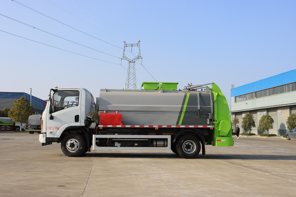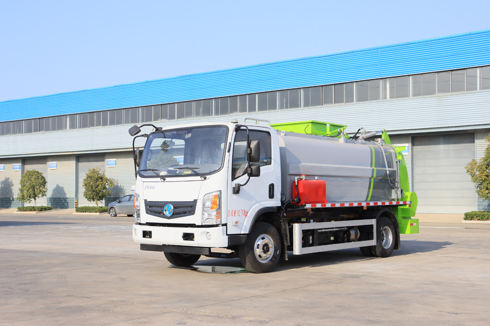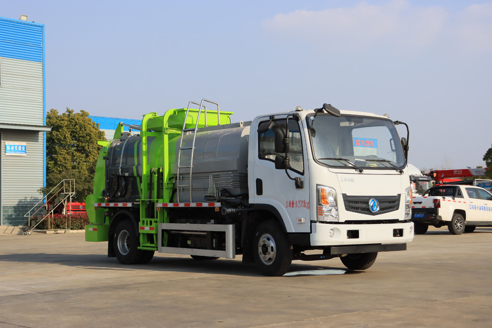四、其他說明: 東風(fēng)純電動餐廚垃圾車是在東風(fēng)純電動二類底盤的基礎(chǔ)上,加裝垃圾箱、垃圾桶提升機、清洗裝置、液 壓系統(tǒng),由機械、液壓(氣路)、電器三部分合為一體的專用廚余垃圾處理、轉(zhuǎn)運作業(yè)車。 工作原理:整車為全密封型,自行壓縮、自行傾倒、壓縮過程中的污水全部進(jìn)入污水箱,徹底的解決了 垃圾運輸過程中的二次污染,具有壓力大、密封性好、操作方便。安全等優(yōu)點。垃圾箱可實現(xiàn)箱內(nèi)餐廚垃圾 固液的初步分離,并采用大容積污水箱,提高產(chǎn)品裝載量; 電控系統(tǒng)采用無線遙控,并通過作業(yè)動作邏輯互 鎖,保證操作的精準(zhǔn)性,杜絕誤操作。