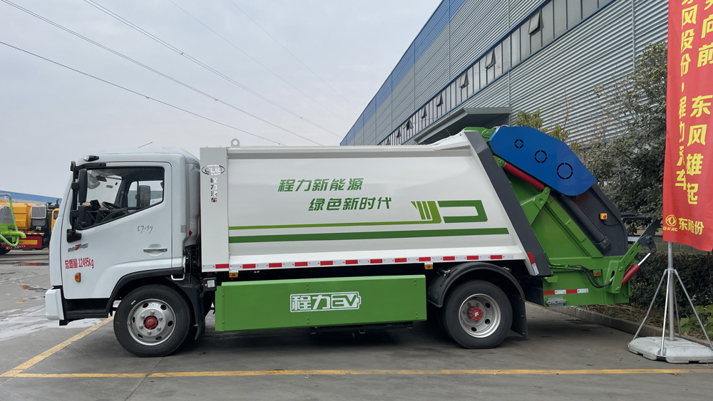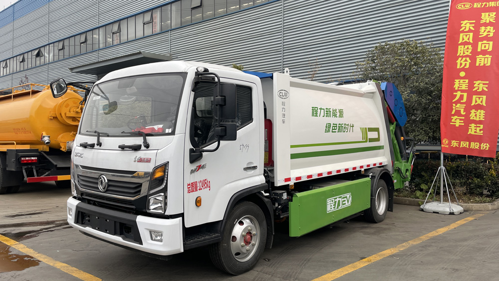 四、其他說明: 東風凱普特純電動壓縮式垃圾車,該車裝備有垃圾箱體,液壓機構及垃圾裝填器,用于將垃圾自行壓實裝入,轉運和卸料功能;