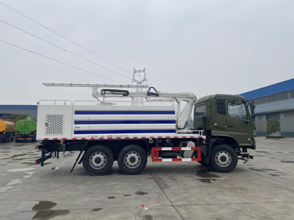 太陽能面板清洗車采用東風越野六驅底盤,它適用于各種路面灑水、噴霧、降溫、除塵、沖洗,主要用于光伏面板、 隧道墻壁清洗,同時可用于路面養
