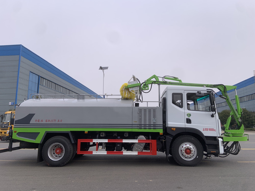 隧道清洗車由底盤,罐體、機(jī)械臂、水泵、噴嘴,清洗刷、一體完成工作。機(jī)械臂可359°旋轉(zhuǎn),所有的操作都在駕駛室完成。