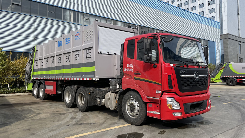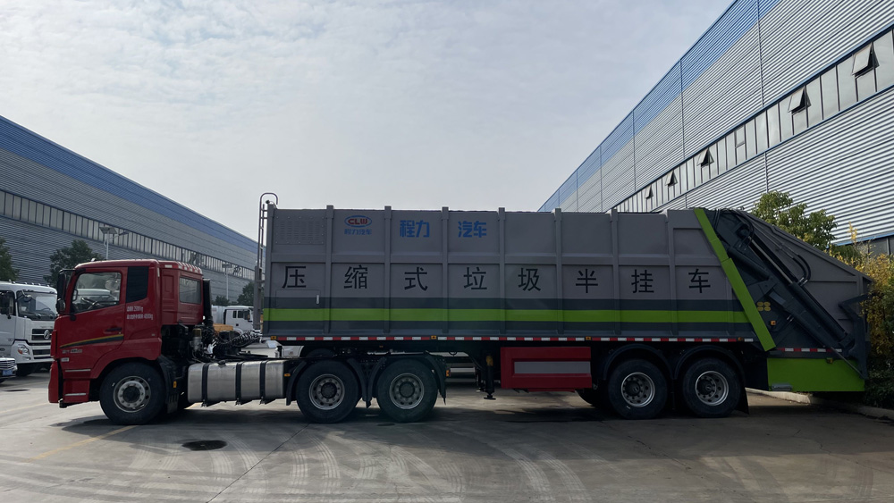 四、其他說明: 半掛式設計使其車身較長,車廂容積一般可達 30-40 立方米甚至更大,能裝載大量垃圾,可有效減少運輸次數,提高垃圾清運效率,適合城市大型垃圾轉運站、大型社區或商業區等垃圾集中區域的垃圾清運。對于生活垃圾、建筑垃圾、工業垃圾等多種類型垃圾,只要在車輛設計承載范圍內,均可進行裝載運輸。較大的空間也便于收納體積較大的垃圾。