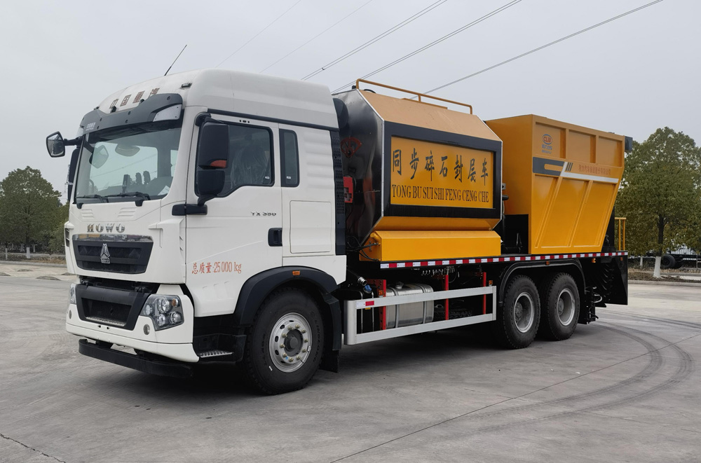 四、其他說(shuō)明: 同步碎石封層是指利用同步碎石封層車(chē)將瀝青結(jié)合料的噴灑和石料的灑布同時(shí)進(jìn)行,使瀝青結(jié)合料與石料之間有最充分的接觸,以達(dá)到它們之間最大限度的粘結(jié)度。其更容易保證粘結(jié)劑和石料之間穩(wěn)定的比例關(guān)系,提高作業(yè)生產(chǎn)率,減少了機(jī)械配置,降低了施工成本。瀝青路面經(jīng)過(guò)同步碎石封層后,具有更好的防滑和防滲水性能,能有效治愈路面貧油、掉粒、輕微網(wǎng)裂、車(chē)轍、沉陷等危害。無(wú)論是高等級(jí)公路還是普通公路,都可以使用此項(xiàng)技術(shù)。
