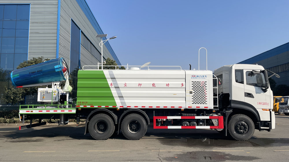 二、多功能抑塵車特點:搭載我司自主研發的專用風送式霧炮機(噴霧機),不同霧炮,搭配功率不同的副發動機,射程可達30-120米。噴霧機可實現無線遠程遙控作業,操控簡單靈活,安全可靠。多功能抑塵車兼具綠化噴灑,消防應急,除塵降塵,噴藥消毒等功能,具有功率大、用水量少、射程遠、覆蓋面積廣、抑塵效果好、作業效率高、噴霧速度快等特點。