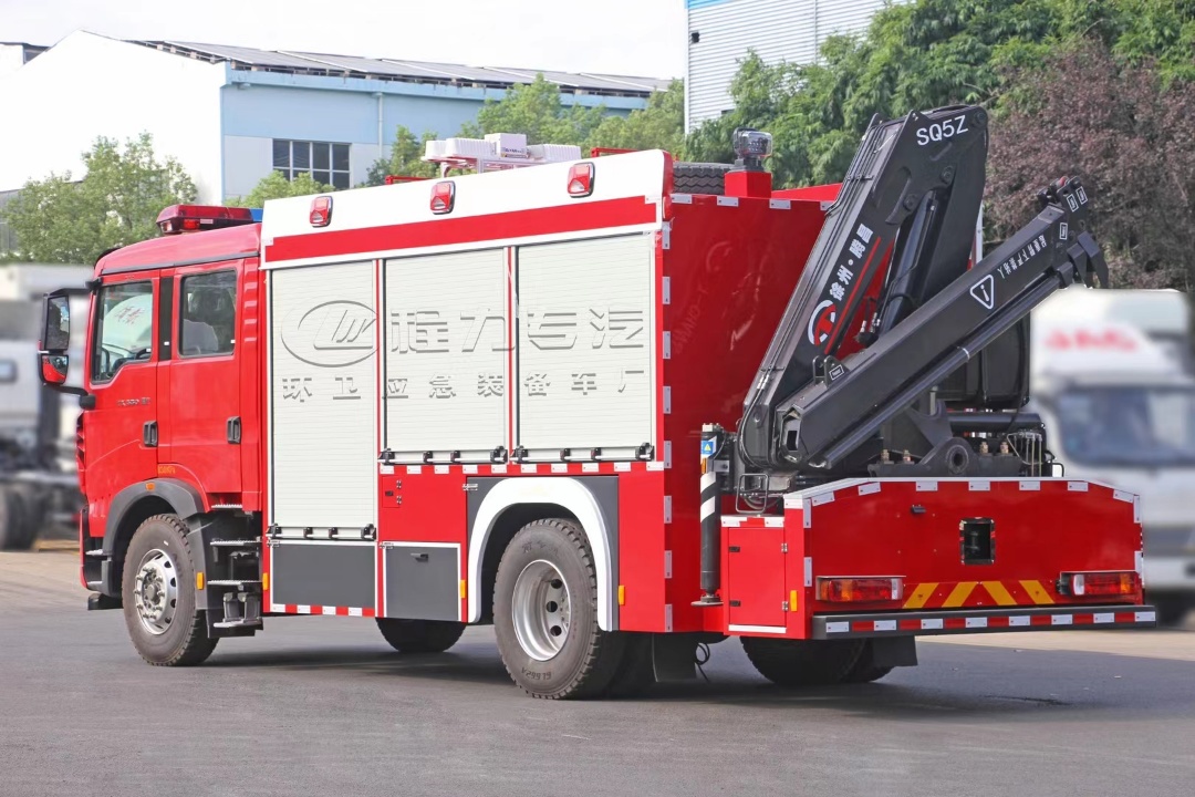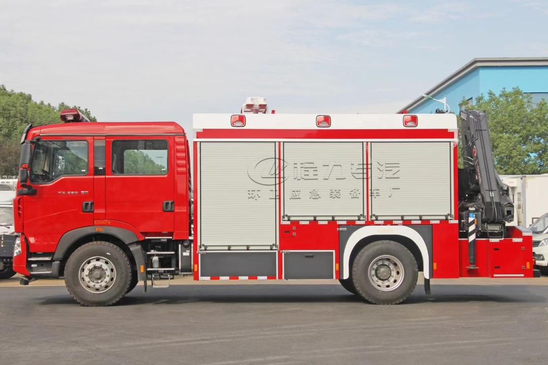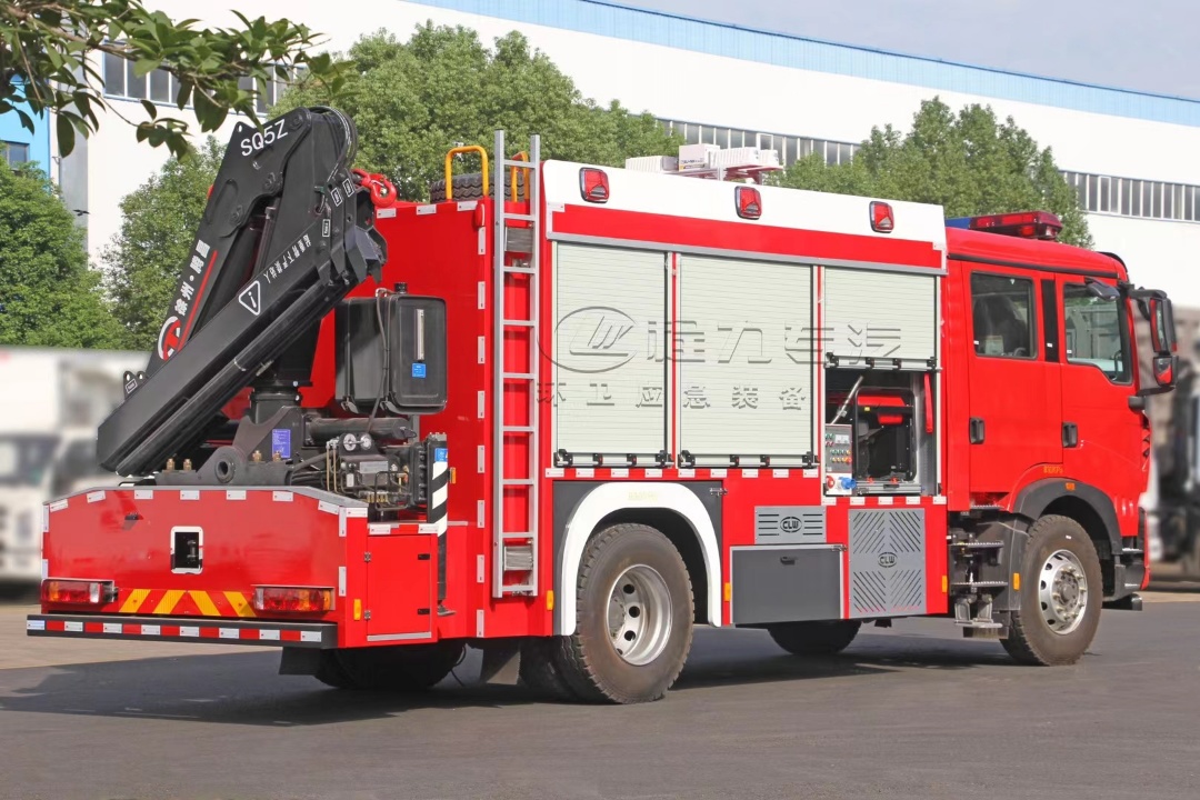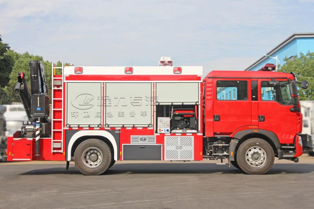 四、其他說明: 重汽豪沃搶險救援消防車,前拖后吊,具有起吊、自救/牽引、清障、發電、照明等功能,可裝備大量的破拆、偵檢、堵漏、防護等各類消防器材或工具;車輛器材箱內部采用鋁合金型材可調模塊式結構,空間布局合理,工具取放安全方便,屬于特勤消防車,廣泛用于消防救援隊,應對各種自然災害、突發事件及搶險、搶救等各個領域。